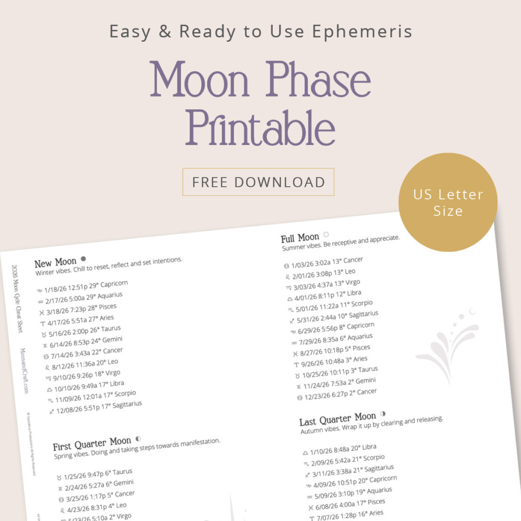 Sign up to receive a 2024 Pocket Moon Ephemeris and always know when the next Moon Phase is. Plus, you’ll be added to my newsletter to receive the latest updates.